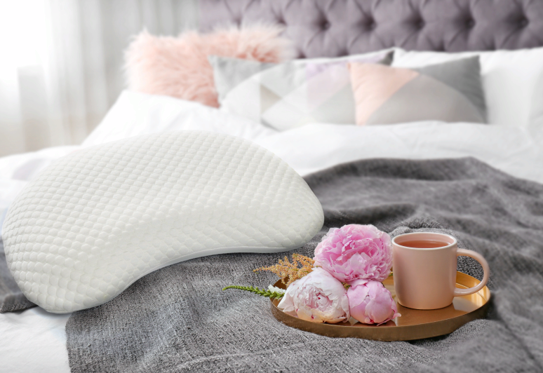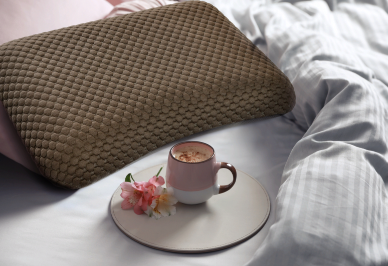 Необычайно комфортный материал чутко реагирует на изменение положения во время сна и нежно подстраивается под контуры головы и шеи